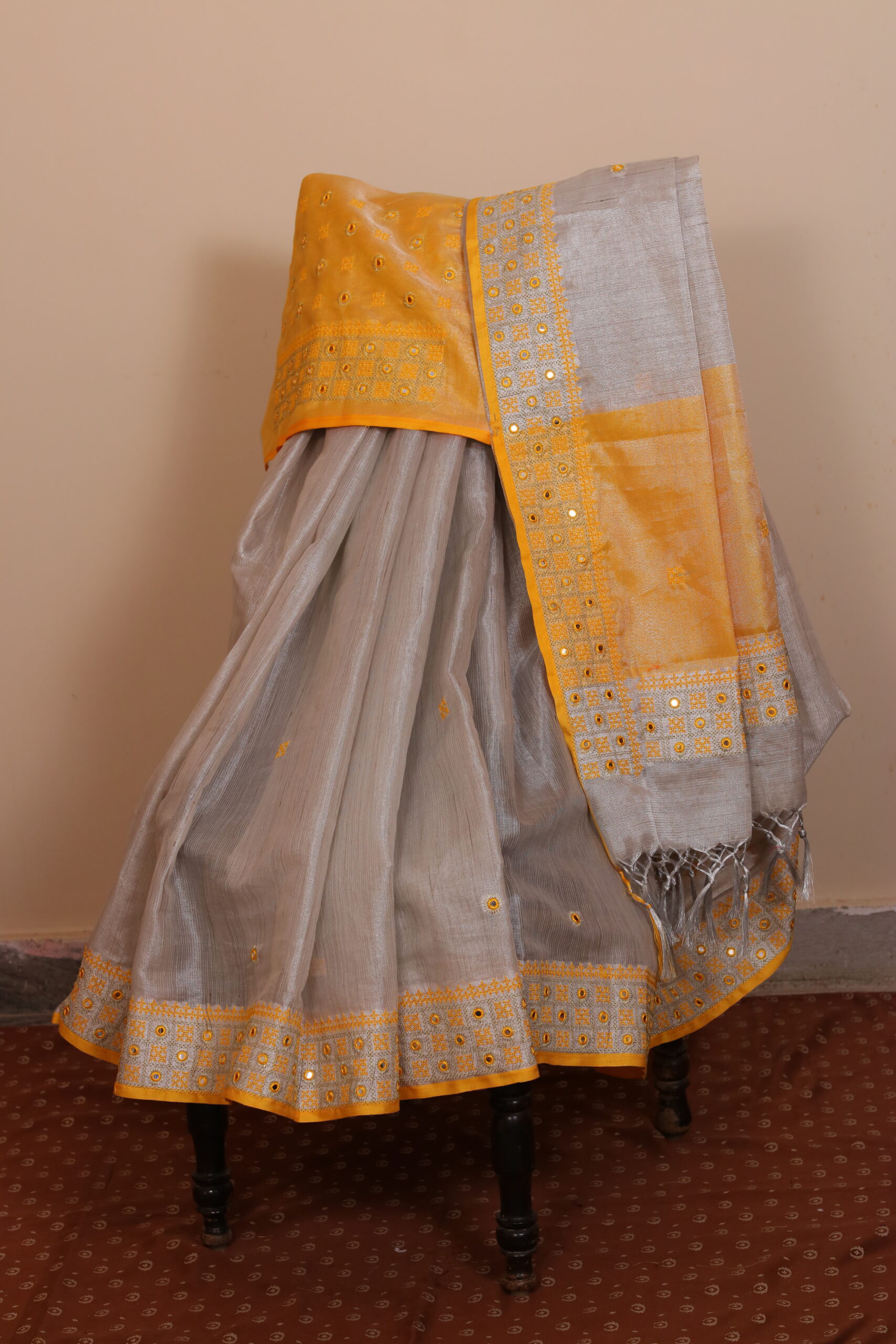 Designer tissue sarees are the best styling sarees with extremely simple look, which can be used for all the occasions. Our computerized embroidery designing will add more color to the sarees.